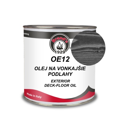 Brands OE12 DECK-FLOOR OIL odtieň čierna - exteriérový podlahový olej je zmes prírodných olejov a uretánových živíc, určený hlavne na exteriérové drevené podlahy, terasy, ploty, drevené domy, záhradný nábytok. Vďaka nízkej viskozite hlboko preniká do dreva a vďaka vysokému obsahu pevných látok poskytuje účinnú ochranu a priedušnosť bez odlupovania. Na povrch dreva vytvára prirodzený, saténový efekt. Produkt je obohatený o UV filtre a antiseptické prísady, a chráni tak drevo pred zošednutím a chorobami. Vyznačuje sa mimoriadne jednoduchou aplikáciou, nie len v transparentnej forme, ale aj keď je prifarbený. Údržba je veľmi jednoduchá. Obnovovací náter nanesiete po očistení povrchu od hrubých nečistôt a prachu bez nutnosti brúsenia.